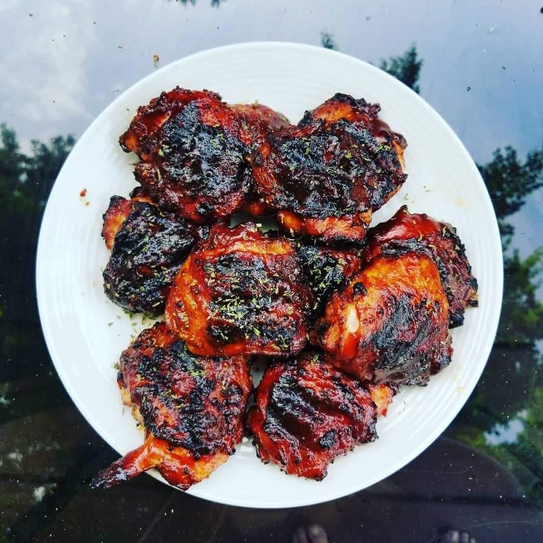 It’s a homestyle, family recipe. Derek made the original and we loved it so much we recorded the recipe to recreate it for ourselves. It is sweet and salty with a bit of heat. Once you’ve had a taste, you’ll never rub your meat with anything else. We recommend using it on pork and poultry – although we hear its great on hashbrowns and eggs as well!